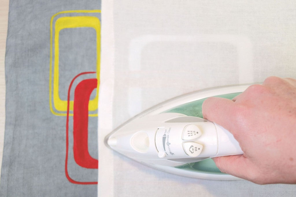 4. Fissare con il ferro da stiro (impostazione cotone, 5 min) o in forno (8 min a 150 °C).